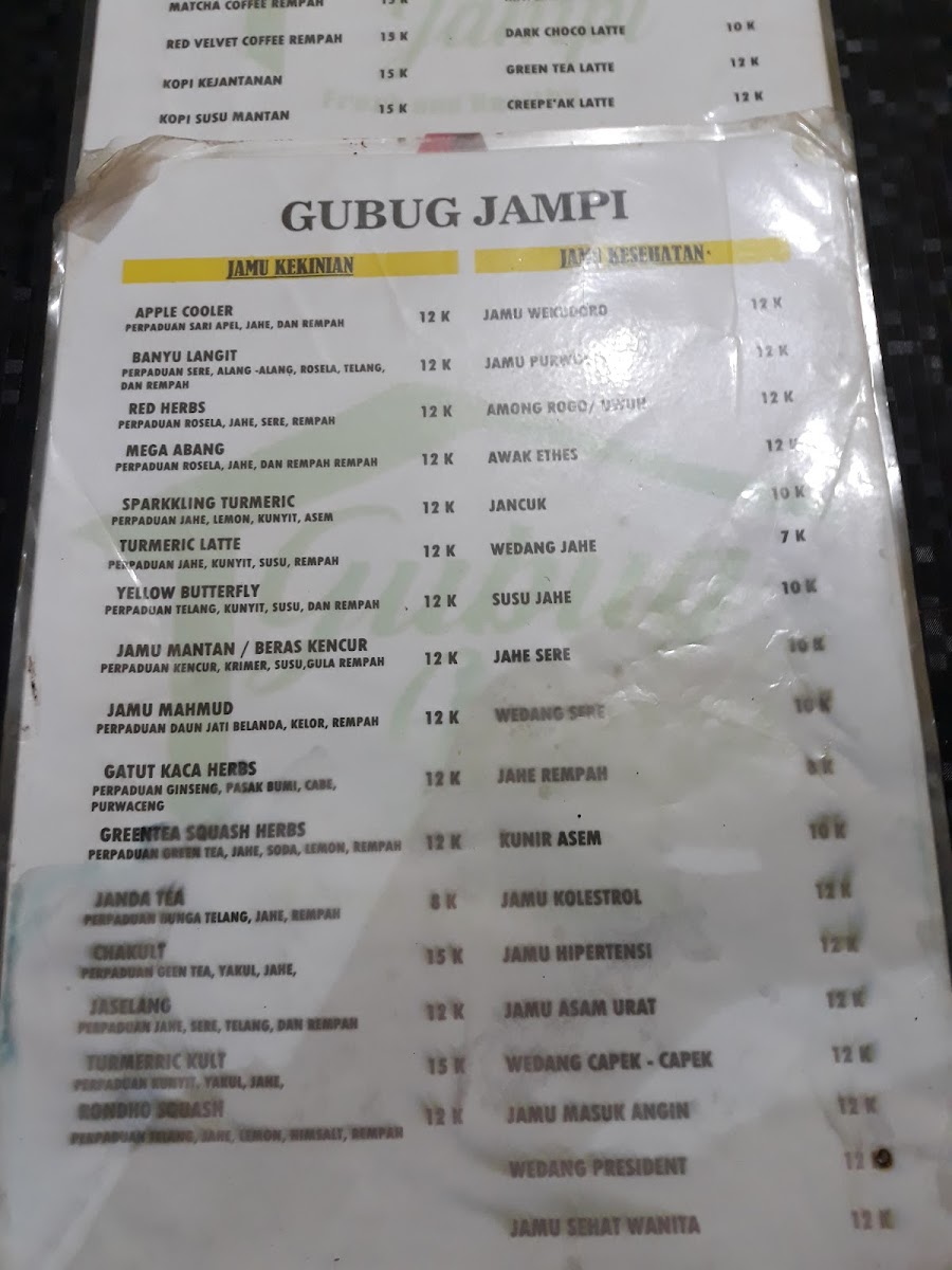 Welcome to GUBUG JAMPI, a vibrant café nestled in the heart of Karanganyar, Indonesia. This trendy spot redefines traditional jamu, offering a modern twist on Indonesia's herbal beverages. At GUBUG JAMPI, you can relish a variety of jamu that is not only refreshing but also devoid of the bitterness commonly associated with these health elixirs.